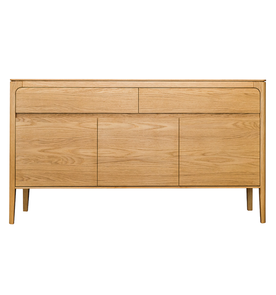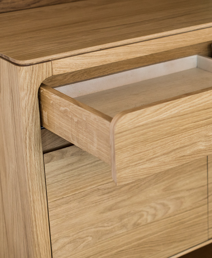 Stylowa i solidna komoda wykonana w 100% z litego drewna dębowego. Prosta forma z delikatnie zaokrąglonymi krawędziami sprawia, że doskonale pasuje zarówno do nowoczesnych, jak i klasycznych wnętrz. Dwie pojemne szuflady i trzy przestronne szafki oferują funkcjonalną przestrzeń do przechowywania. Naturalne wykończenie podkreśla szlachetny rysunek drewna.