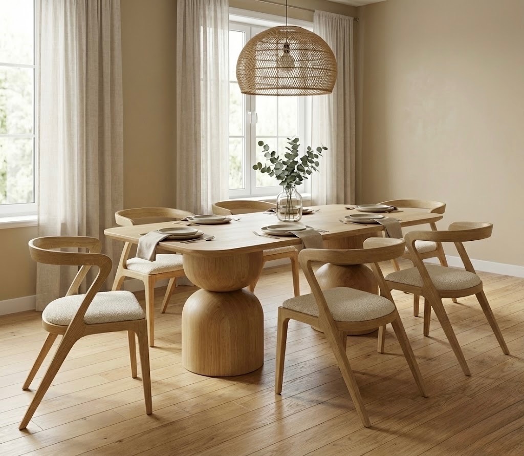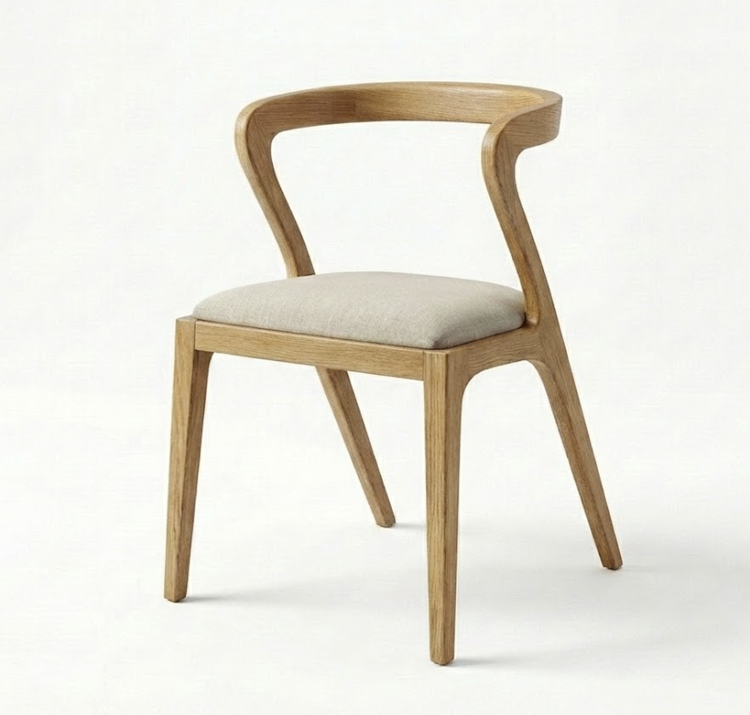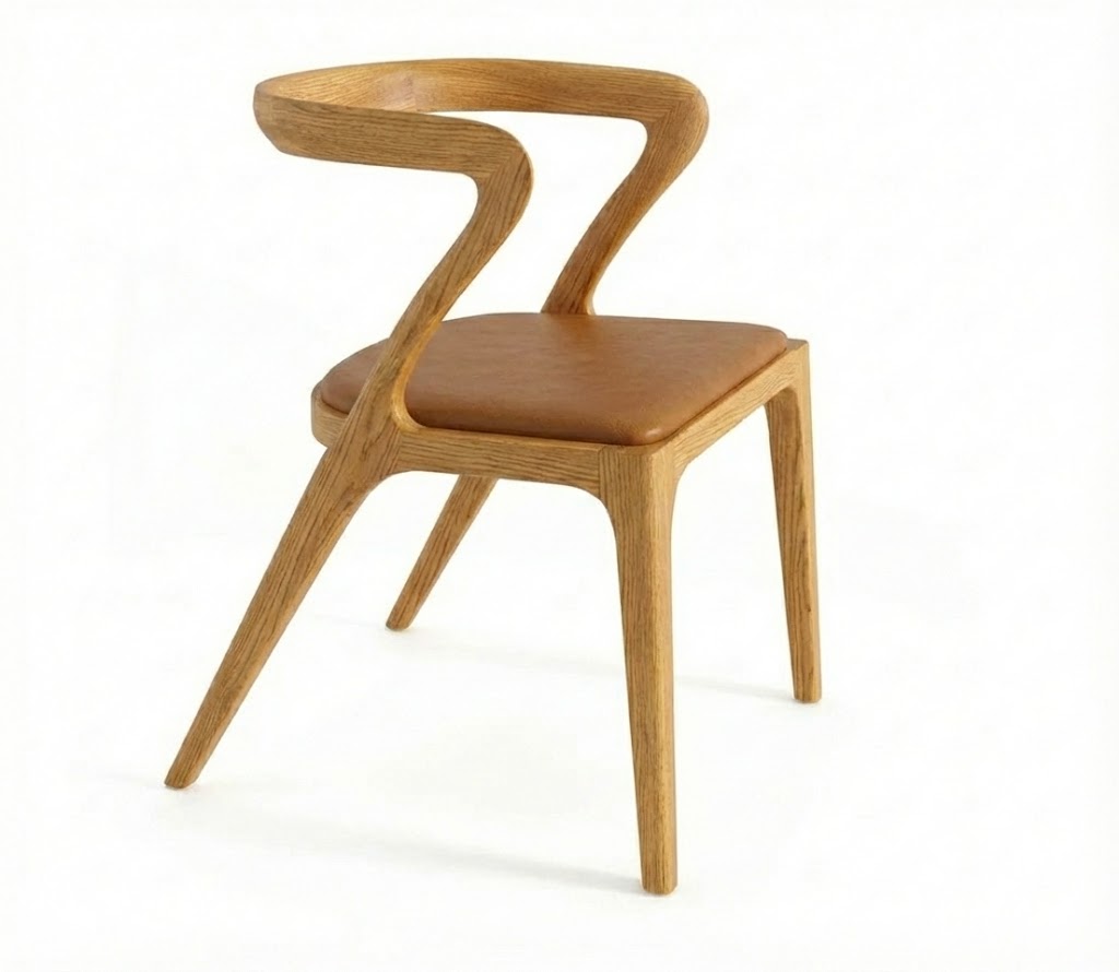 To nowoczesne krzesło wykonane w całości z litego drewna dębowego zachwyca wyjątkową, dynamiczną linią i elegancką prostotą. Płynnie wygięte oparcie przechodzi w tylne nogi, tworząc spójną, organiczną formę inspirowaną designem skandynawskim i japońskim. Konstrukcja jest solidna, a jednocześnie wizualnie lekka doskonale sprawdzi się przy stole w jadalni lub w salonie. Tkanina do wyboru